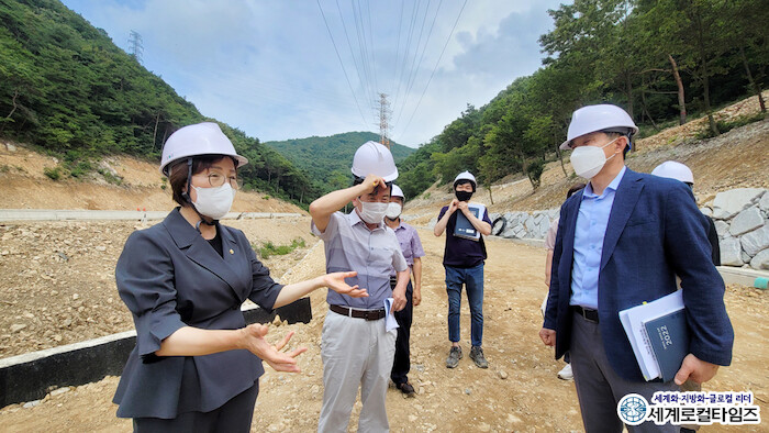 [세계로컬타임즈 글·사진 조주연 기자] 전북 김제시의회 일부 의원들이 8일 오후, 고압송전탑 문제로 “졸속 사업추진”이란 비난을 받고 있는 금구면 선암리 자연휴양림 조성 사업 현장을 방문해 추진 상황과 향후 대안에 대해 이야기를 나누고 있다. 김제시는 수백억 원 규모의 자연휴양림 조성 사업 추진하면서 부지 내 고압 송전선로를 전혀 고려하지 않은채 공사를 착공한 것으로 전해졌다.