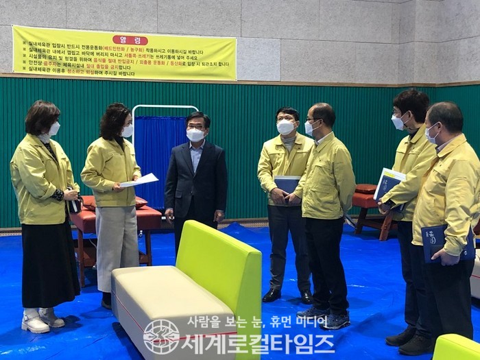 | ▲백신접종시설을 점검하는 라태일 완주부군수.(사진=완주군 제공) |