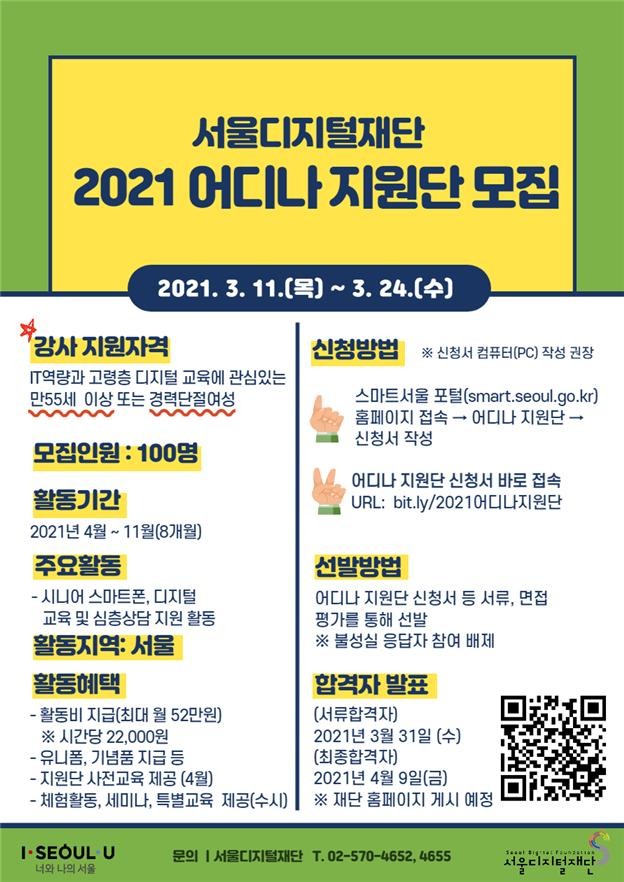 이번에 선발된 ‘어디나 지원단’은 오는 4월부터 8개월간 이 같은 교육프로그램에 강사로 참여하게 된다.