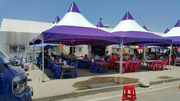 | ▲ 경기도 화성시 전곡항 수산물 직판장에서 화성시 뱃놀이축제기간 불법 천막을 설치하고 테이블 놓고 손님들에게 음식을 판매하고 있는 모습. |