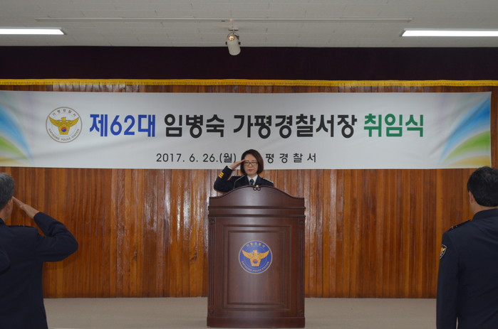 [세계로컬신문 고성철 기자] 경기도 가평경찰서(서장 임병숙)는 지난 26일 오전 3층 강당에서 각 과장, 파출소장 등 직원 70여명이 참석한 가운데 제62대 임병숙 서장의 취임식을 진행했다.