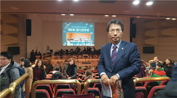 | ▲ 지난 2일 신상계 드림윈드 오케스트라 정기 연주회에 참석한 김광수 서울시의원. <사진제공=서울시의회> |