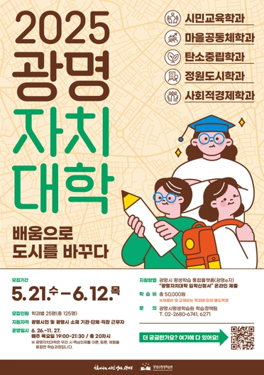 정찬수 평생학습원장은 “광명자치대학은 단순한 학습 과정을 넘어, 시민 한 사람 한 사람이 지역의 문제를 함께 고민하고 해결해가는 마을리더로 성장하는 여정”이라며 “앞으로도 시민이 주도하는 지속가능한 도시를 실현할 수 있도록 다양한 학습 기회를 제공하겠다”고 말했다.