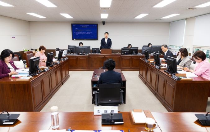 이날 의회 제2상임위원실에서 열린 회의에는 최진호 위원장을 비롯한 의회운영위원회 위원들과 김태훈 재단 대표이사 후보자 등이 참석했다.