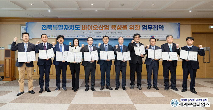 [세계로컬타임즈 조주연 기자] 전북도와 익산시 등 8개 기관이 바이오산업 육성을 위한 협약을 맺었다.