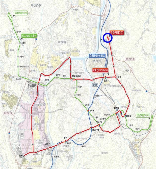 대전 도시철도 2호선은 연장 37.8㎞ 정거장 37개소, 차량기지 1개소를 사업비 7,643억 원을 투입해 현재 기본 및 실시설계를 추진하고 있으며, 2022년 말까지 설계를 추진하고 설계가 완료되는 대로 공사를 착수해서 2027년 개통을 목표로 추진하고 있다.