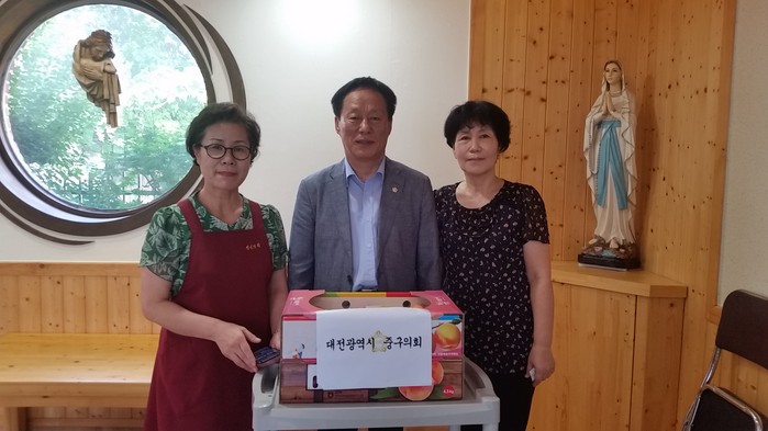 중구의회 하재붕 의장은 24일 지역 사회복지법인 '성심의 집', '주사랑의 집' 등 노인복지시설을 방문해 시설 관계자 격려와 시설 요양 어르신들의 안부를 챙기며 소정 위문품을 전달했다.