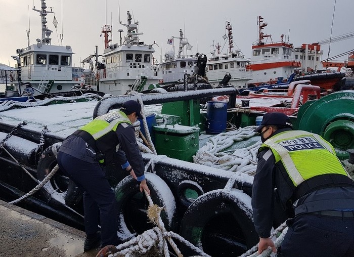 | ▲목포해경이 기상악화에 따라 항포구를 집중 순찰하며 선박의 정박상태를 점검하고 있다.(사진=목포해경) |