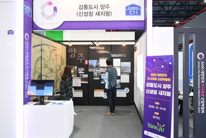| ▲ 서울 SETEC 전시장에서 열리는 ‘2020 대한민국 도시재생 산업박람회’에 양주시 홍보부스. (사진=양주시청 제공) |