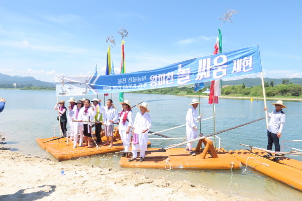 7일 울진군에 따르면 대표 여름축제인 '제7회 울진워터피아 페스타'가 펼쳐지는 왕피천에서 지난 5일 오전 10시부터 10개 읍·면 34개 어촌계가 참여한 가운데 놀싸움을 재현, 60여년 만의 첫 우승을 놓고 각축전을 펼쳤다.