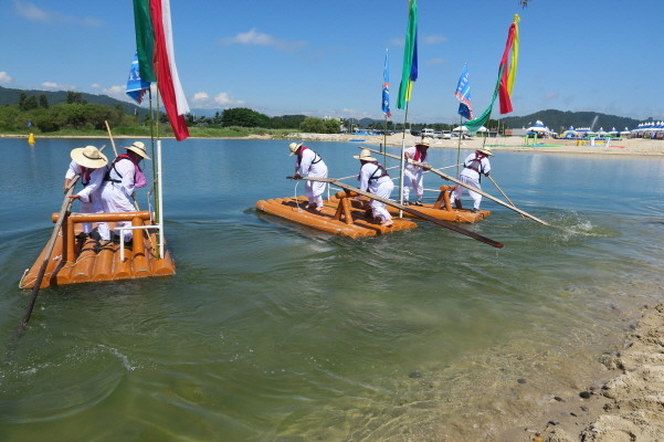 선수들은 2인1조로 팀을 이뤄 왕피천에 마련된 왕복 150m의 거리를 '뗏마(뗏목의 울진지방 방언)'를 저으며 대동놀이의 진수를 한껏 선 보였다.