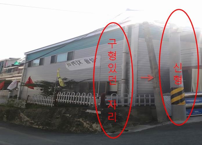 | ▲ 골목길 모퉁이 구형 전신주를 소방 중형펌프차가 통행이 용이한 쪽으로 신형전신주로 교체·이설한 모습.<사진제공=대전시청> |