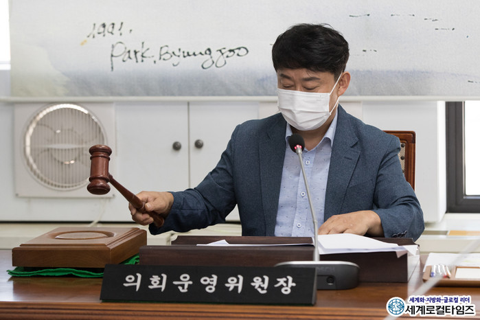 | ▲군산시의회 김우민 운영위원장이 의사일정을 확정하고 있다. ⓒ군산시의회 |