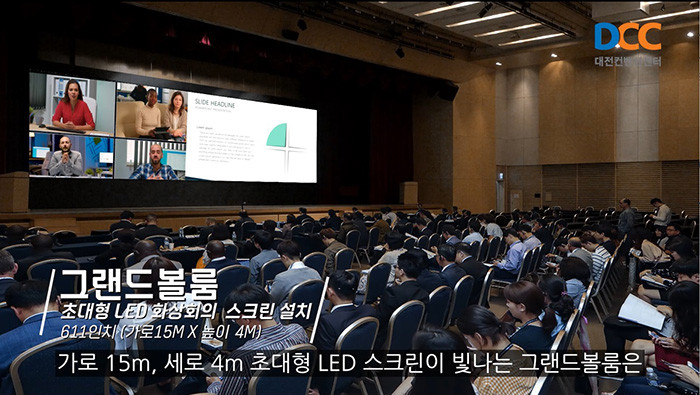 그랜드볼룸 201호(2,042㎡) 다목적 국제회의장에는 국내 컨벤션센터 실내회의용 LED 스크린중 최대규모인 가로 15M / 세로 4M (611인치) 초대형 LED스크린이 설치됐다.