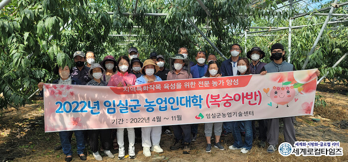 [세계로컬타임즈 조주연 기자] 전북 임실군 농업인대학 복숭아 과정 교육생 20여 명이 고품질 복숭아 생산을 위한 선진 재배포장 견학에 나섰다.