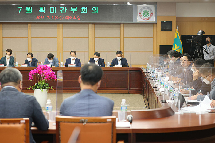 [세계로컬타임즈 민순혜 기자] 이장우 대전광역시장은 5일 시청 대회의실에서 민선 8기 첫 확대간부회의를 열고 시민의 마지막 보루가 공직자임을 강조하고 일 잘하는 공직문화 조성을 주문했다.