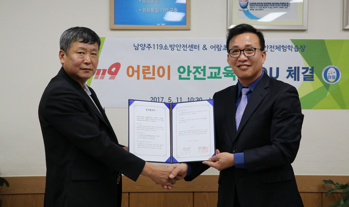 이날 업무협약은 남양주소방서 119안전체험관과 어람초등학교 i-으뜸 교통안전체험학습장 상호 협력을 통한 학생들의 안전의식을 고취하고자 마련됐다.