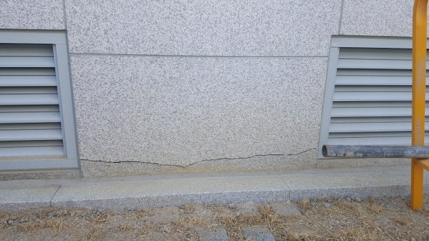 | ▲ 남양주시 지금동 종합행전타운 뒷 벽면 갈라진 부분. |