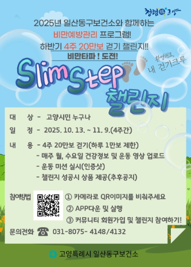 일산동구보건소 관계자는“걷기는 남녀노소 누구나 쉽게 실천할 수 있는 최고의 건강 습관”이라며“이번 챌린지가 주민들의 건강 증진과 비만 예방에 긍정적인 변화를 가져오길 기대한다”고 전했다.