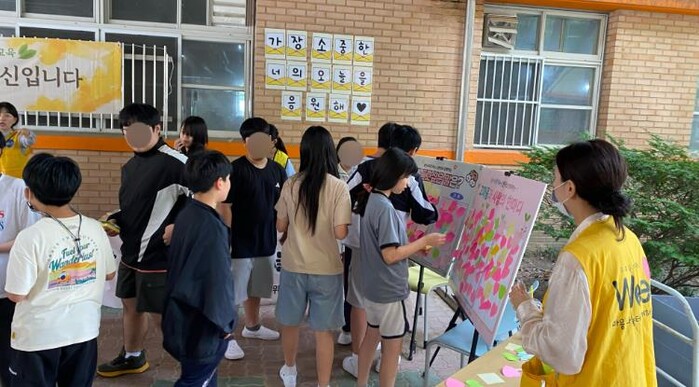 주요 활동으로는 친구나 가족에게 사랑의 표현을 작성하는 ‘너의 마음을 전해줘’, 즐거운 놀이 활동을 통해 생명과 사랑의 가치를 인식하는 ‘하트시그널’,Wee센터 홍보 물품 배부 등이다.