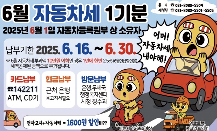 납세 대상은 2025년 6월 1일 기준 양주시 자동차등록원부상 등록 소유자이며 납부 기한은 오는 30일까지다.