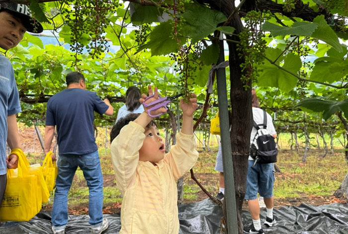 참가자들은 영동 대표 과일인 포도의 생육과정을 직접 체험하며 영동농업의 우수성을 체감하는 시간을 가졌다.