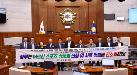 건의안을 대표 발의한 김강정 의원은 “어르신들이 실제로 스포츠 상품권을 신청하고 사용하는 데 큰 어려움을 겪고 있다”며, “디지털 접근성이 낮은 고령층을 고려한 간소화된 신청 절차와 실물 카드형 상품권 도입 등 현실적인 개선이 시급하다”고 강조했다.