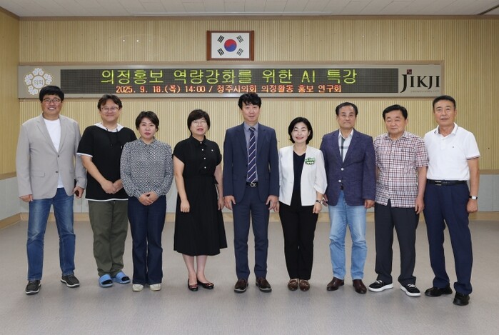 [세계로컬타임즈] 청주시의회 ‘의정활동 홍보 연구회’(대표의원 이인숙)는 18일 오후 2시, 청주시의회 특별위원회실에서 ‘AI 활용 의정홍보 특강’을 개최했다.