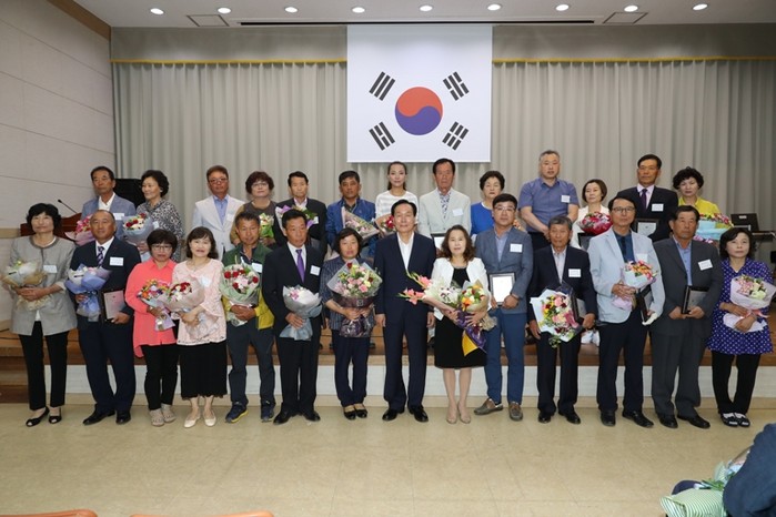 | ▲ 의성군이 지난 1일 평등한 가족문화 확산에 기여한 모범부부 18쌍에게 표창패를 수여한 후 기념촬영하고 있다.<사진제공=의성군청> |