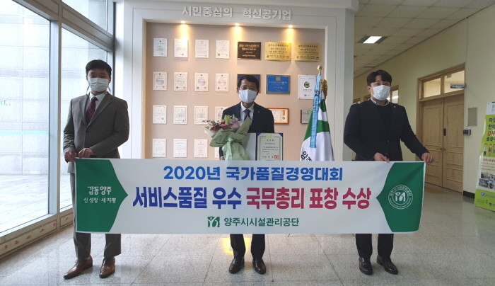 [세계로컬타임즈 신선호 기자]양주시시설관리공단은 산업통상자원부 주최로 실시된 2020년 국가품질경영대회에서 서비스품질우수 분야 국무총리 표창을 수상했다.