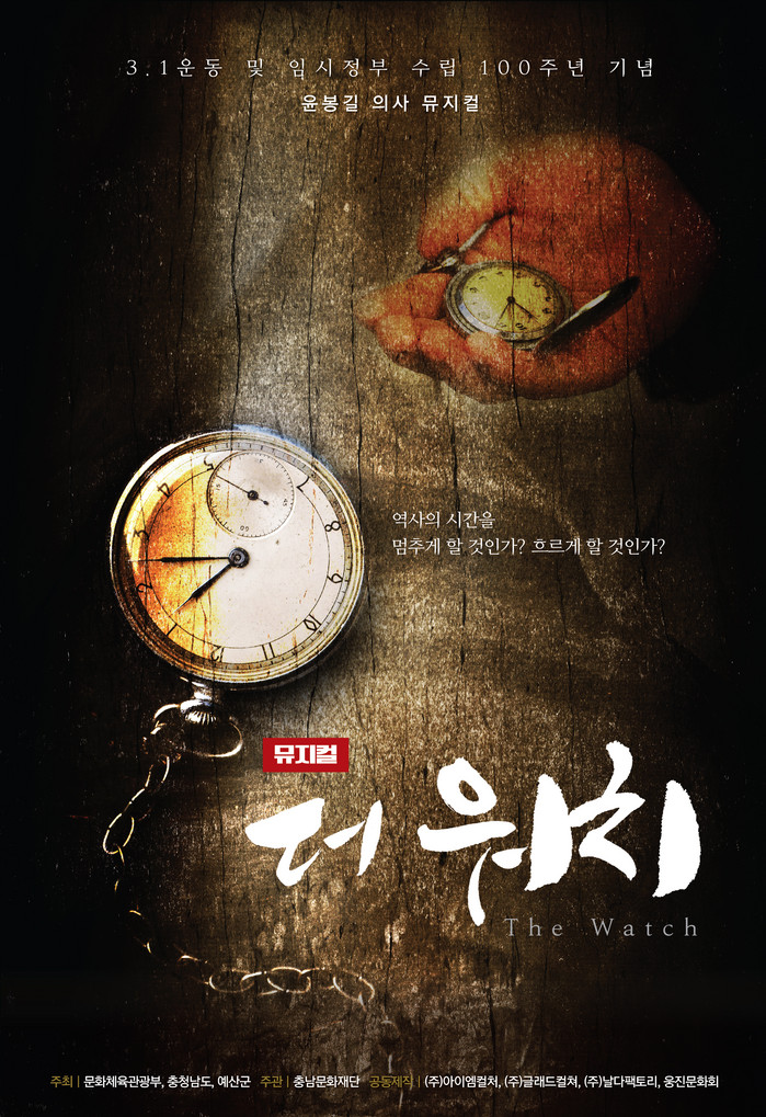 [세계로컬타임즈 홍윤표 조사위원] 충남문화재단과 대표제작사 아이엠컬처는 3.1운동 및 임시정부 수립 100주년을 기념으로 윤봉길 의사와 홍커우 공원 거사를 다룬 뮤지컬 '더 워치(The Watch, 사진)'를 제작하고 함께할 전 배역의 오디션을 진행한다.