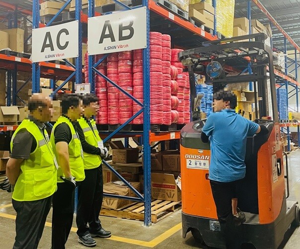 | ▲‘물류체험형 입식지게차 실무 역량강화’사업의 일환으로, 관내 물류 기업체에서 현장 체험 실습교육을 하고 있다. [사진=남양주시] |