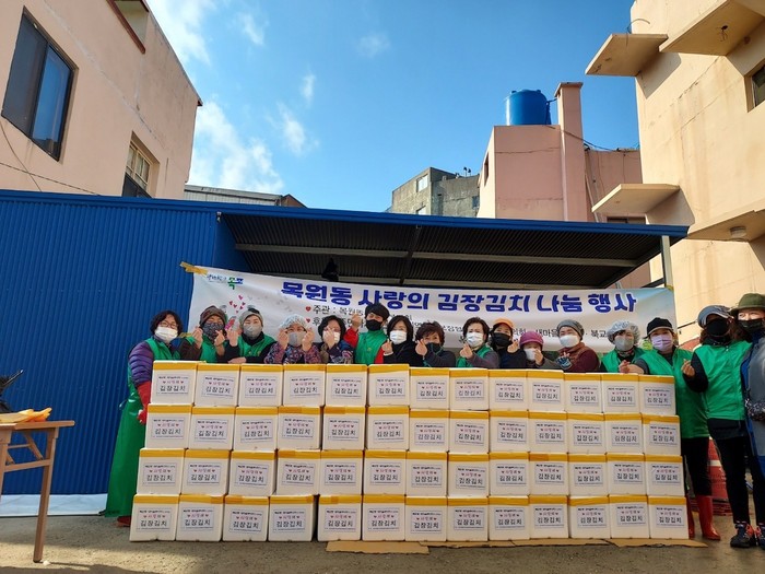 목원동에서는 지난 3일 목원동새마을부녀회(회장 박현)가 자생단체연합(주민자치위원회, 새마을협의회, 통장협의회)과 함께 ‘목원동 사랑의 김장김치 나눔행사’를 가졌다.