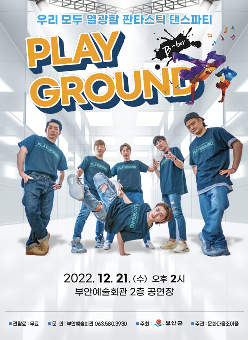 [세계로컬타임즈 조주연 기자] 전북 부안예술회관에서 오는 21일 댄스콘서트 ‘플레이 그라운드’가 무료공연된다.