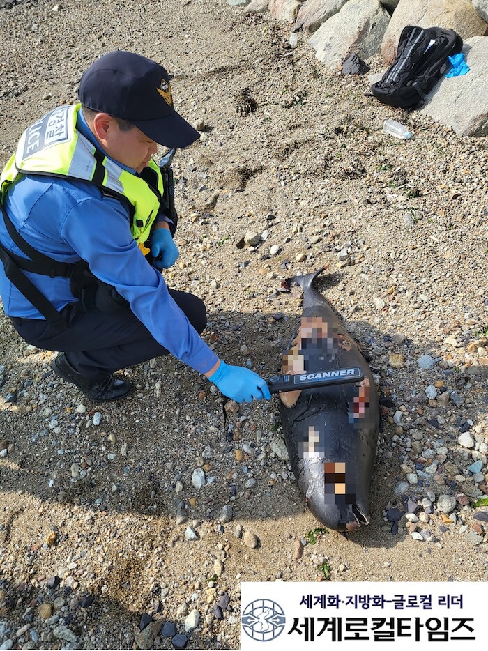 [세계로컬타임즈 김명진 기자] 전남 해남군 임하도 방파제 인근 해안가에서 해양보호생물종인 상괭이 사체가 발견됐다.