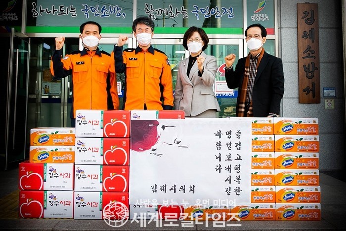 [세계로컬타임즈 조주연 기자] 전북 김제시의회가 민족 고유의 명절인 설 명절을 앞둔 5일 김제소방서, 김제경찰서 및 제8098부대 3대대(안위부대)를 차례로 방문해 군경 장병과 의무소방대원을 격려했다.