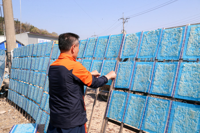 | ▲장고항에서 뱅어포 만들기 위한 건조작업 (사진=당진시) |