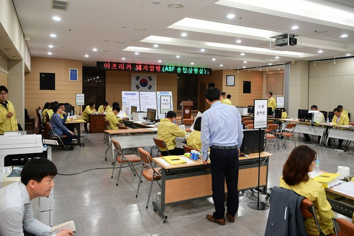 | ▲ 강화군 아프리카 돼지열병(ASF) 종합상황실에서 지역을 관리하고 있다. (사진=강화군 제공) |