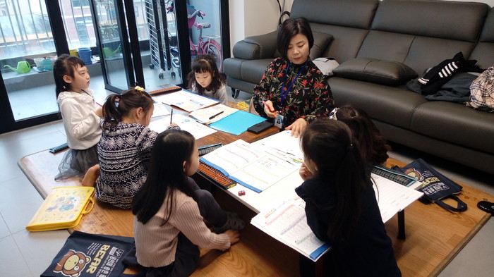 | ▲ 대전 대덕구 한 가정집에서 아이들이 주산과 암산을 배우고 있다. |