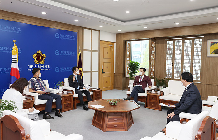 [세계로컬타임즈 민순혜 기자] 대전광역시의회 권중순 의장은 7일 시의회에서 지방자치법 개정에 따라 논의되고 있는 의회 인사권 독립 추진 동향과 향후 대책 마련을 위해 5개 자치구의회 의장들과 간담회를 개최했다.