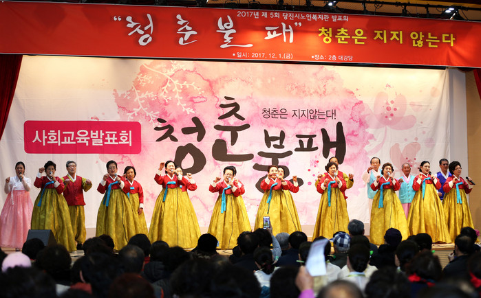 | ▲ 충남 당진시노인복지관에서 200여명의 어르신들이 '청춘불패'라는 주제로 악기연주와 춤, 노래 등 그동안 갈고 닦은 실력을 자랑하고 있다. |