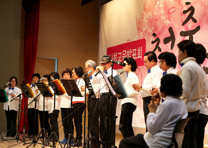 [세계로컬신문 홍윤표 조사위원] 지난 1일 충남 당진시노인복지관 2층 대강당에서 복지관이 운영하는 사회교육 프로그램 발표회가 열렸다. 이날 200여 명의 어르신들이 15개 팀을 이뤄 악기연주와 댄스 등 그동안 갈고 닦은 실력을 뽐냈다.