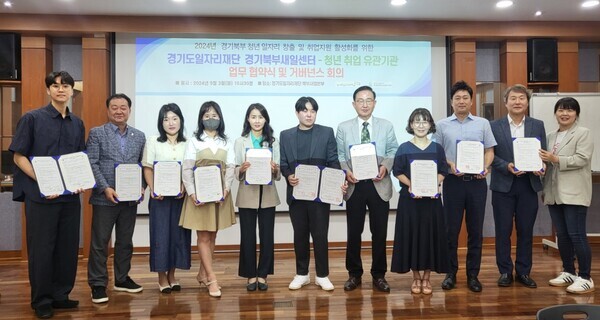 | ▲경기북부새일센터와 청년취업유관기관이 업무 협약을 체결 후 기념촬영을 했다. [사진=경기도일자리재단] |