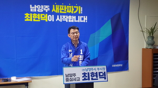 | ▲ 최현덕 남양주시장 예비후보가 남양주시 브리핑 룸에서 9일 기자회견을 하고 있다. |