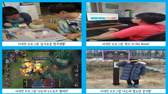 비대면 프로그램으로는 ●슬기로운 방콕생활(집에서 제작하는 다양한 키트 체험), ●퀴즈 in the Room(온라인 플랫폼을 활용한 주제별 퀴즈 게임), ●나는야 e스포츠 챔피언(모바일 게임을 활용한 e스포츠 리그 개최), ●나는야 청소년 걷기왕(모바일 걷기 앱을 활용한 비대면 미션 걷기 진행)등이 있다.