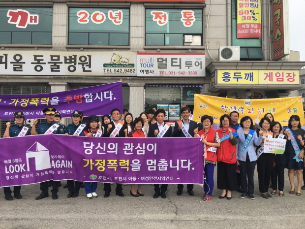 [세계로컬신문 고성철 기자] 경기도 포천시(시장 김종천)는 9월 보라데이를 맞이해 8일 소흘읍 홈플러스 및 추산초등학교 일대에서 ‘2017 포천시 아동학대·여성 폭력 금지, 학교폭력 근절을 위한 유관기관 합동캠페인’을 실시했다.