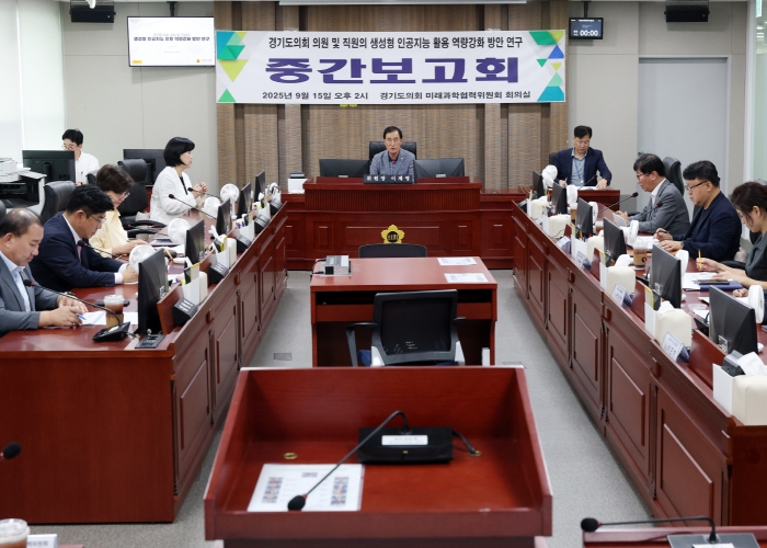 이날 보고회에는 이제영 위원장과 심홍순(국민의힘, 고양11)부위원장을 비롯해 김미숙(더민주, 군포3),김철진(더민주,안산7),윤충식(국민의힘, 포천1) 의원, 유형진(국민의힘, 광주4), 연구용역 수행기관 재단법인 에스디엑스 연구진, 경기도의회 및 경기도청 관계 부서장 등 총 12명이 참석해 AI 활용에 대한 높은 관심을 보였다.