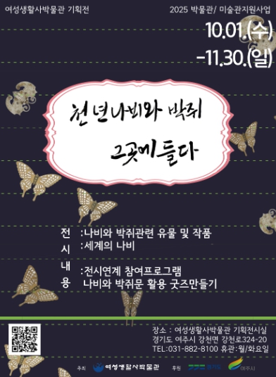 [세계로컬타임즈] 여주시에서 진행하는 2025년 박물관·미술관 지원사업의 일환으로 여성생활사박물관의 ‘천년 나비와 박쥐 그곳에 들다’ 전시가 10월 1일부터 11월 30일까지 개최된다.
