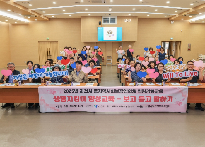 신계용 과천시장은 “지역사회보장협의체 위원 여러분은 지역 복지의 최일선에서 이웃에게 따뜻한 손길을 전하고 계신다”라며 “이번 교육은 생명을 존중하고 지켜내는 공동체로서의 책임을 함께 나누는 자리라는 점에서 더욱 뜻깊다”라고 말했다.