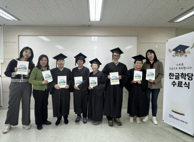 이번 수료식은 참여자들의 학습 의지를 북돋고 성취감을 높이기 위해 마련됐다. 올해로 4년째 운영하는 한글학당은 읽기와 쓰기에 어려움을 느끼는 지역 내 어르신을 대상으로 기초 한글부터 일상생활에 활용할 수 있는 문해 교육 등이 단계적으로 진행됐다.